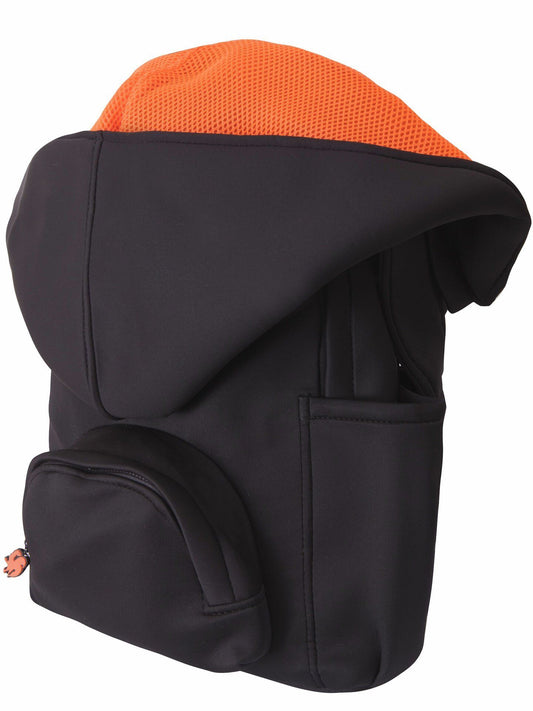 Morikukko Black Basic Neon Orange Hooded Backpack