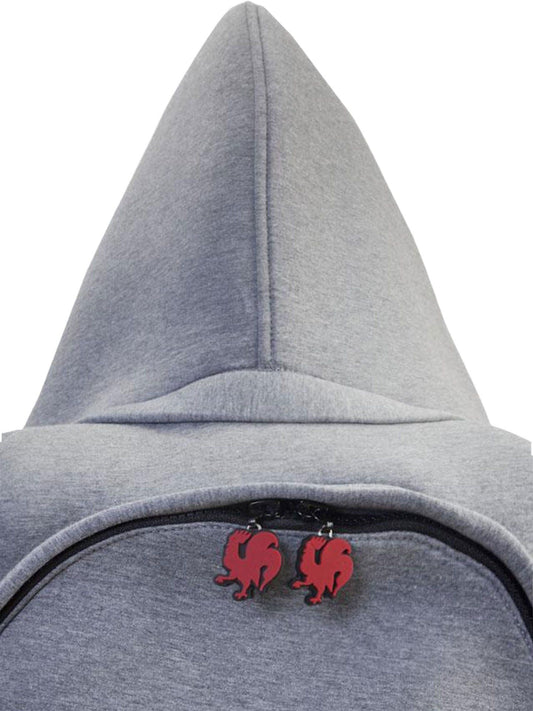Morikukko Grey Basic Red Hooded Backpack