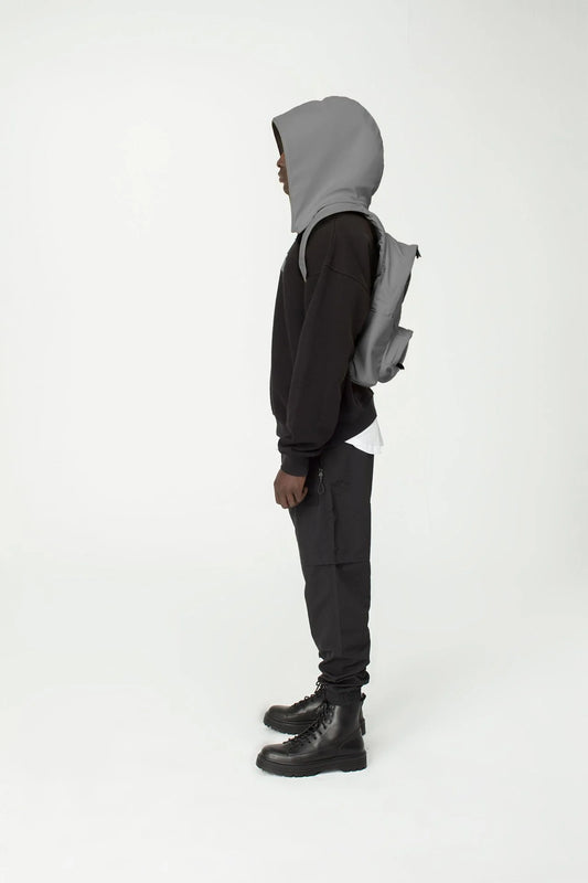 Morikukko Grey Basic Black Hooded Backpack